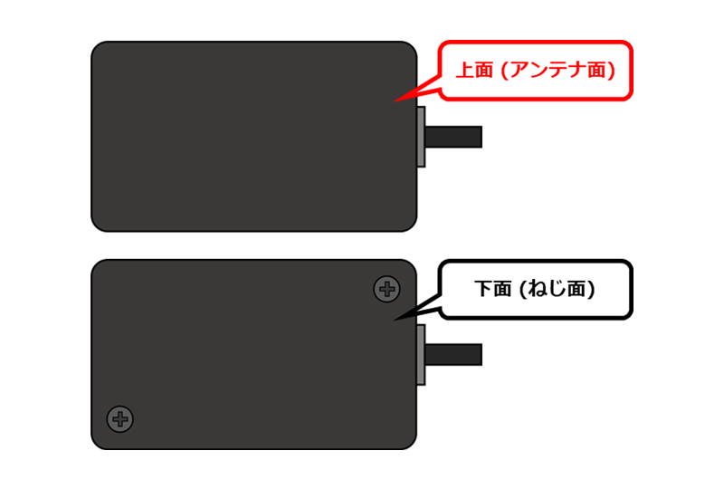 GNSS受信機を、上面と下面に注意し、上面 (アンテナ面) が天空を向くように取り付けます。