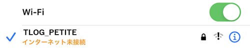 これは、ロガー本体とお使いのスマートフォンで閉域ネットワークを構築しており、このネットワークがインターネットに接続されていないため、「インターネット未接続」と表示されます。