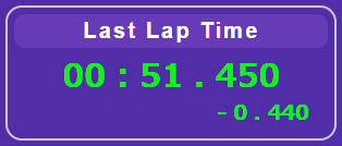 - 走行中のベストラップタイムより速い場合 : 緑色