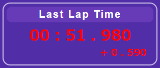 - 走行中のベストラップタイムより遅い場合 : 赤色