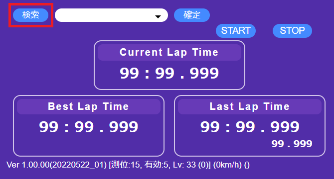 「検索」ボタン : 位置情報をもとに、計測可能なタイム計測ラインを検索します。